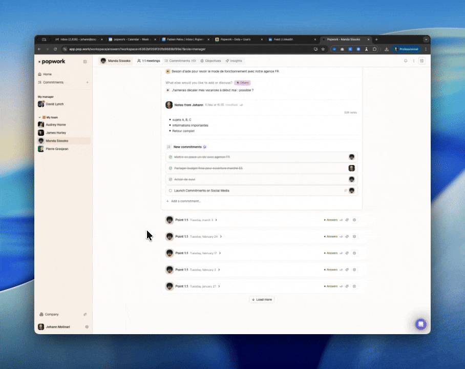 AI-powered capture. Any text in Popwork that suggests a next step - an answer, a note, a piece of feedback - can now be turned into a Commitment in one click. No more losing things between conversations or copy-pasting across tools.
